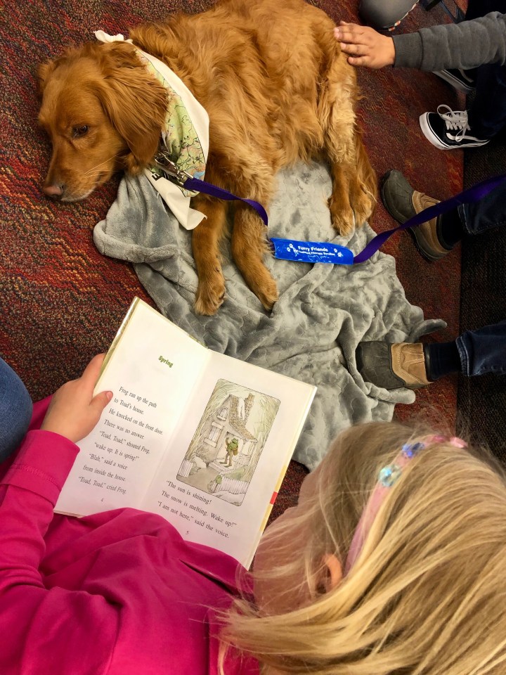 A few weeks ago, I took our girls to a “reading to furry friends” event at our local library. Going into it, I figured our kindergartener, who is just starting to read independently, would enjoy picking out a book she’s familiar with and reading it to the dogs. And I assumed the 3.5-year-old would just be along for the ride, as she usually is…