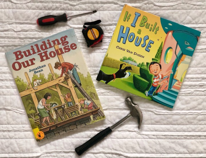 I’ve been spending some time over the last few weeks working on a list of wonderful picture books for the summer, as well as the list of books about moving, and while going through all of those books, I realized I had the perfect pair of books to share with you! So, today, I bring you two wonderful books about building houses– Building Our House by Jonathan Bean and If I Built a House by Chris Van Dusen!