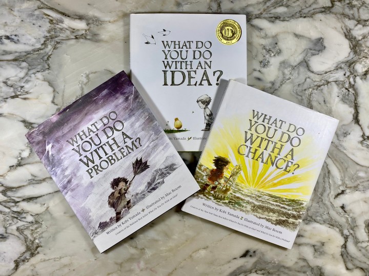 The second in the series, What Do You Do With a Problem?, tells the story of a young boy who encounters a problem. Rather than facing it head-on, he tries to ignore it, ultimately learning that ignoring problems often makes them bigger and more worrisome. Yamada wraps this book up directly, writing “Every problem has an opportunity for something good,” such as the opportunity “to learn and to grow. To be brave. To do something.” Once again, the way Yamada and Besom present these concepts is concrete and easy for small children to understand; the most recent time we reread this book, the same 4-year-old announced at the title page, “When I have a problem, I solve it!”