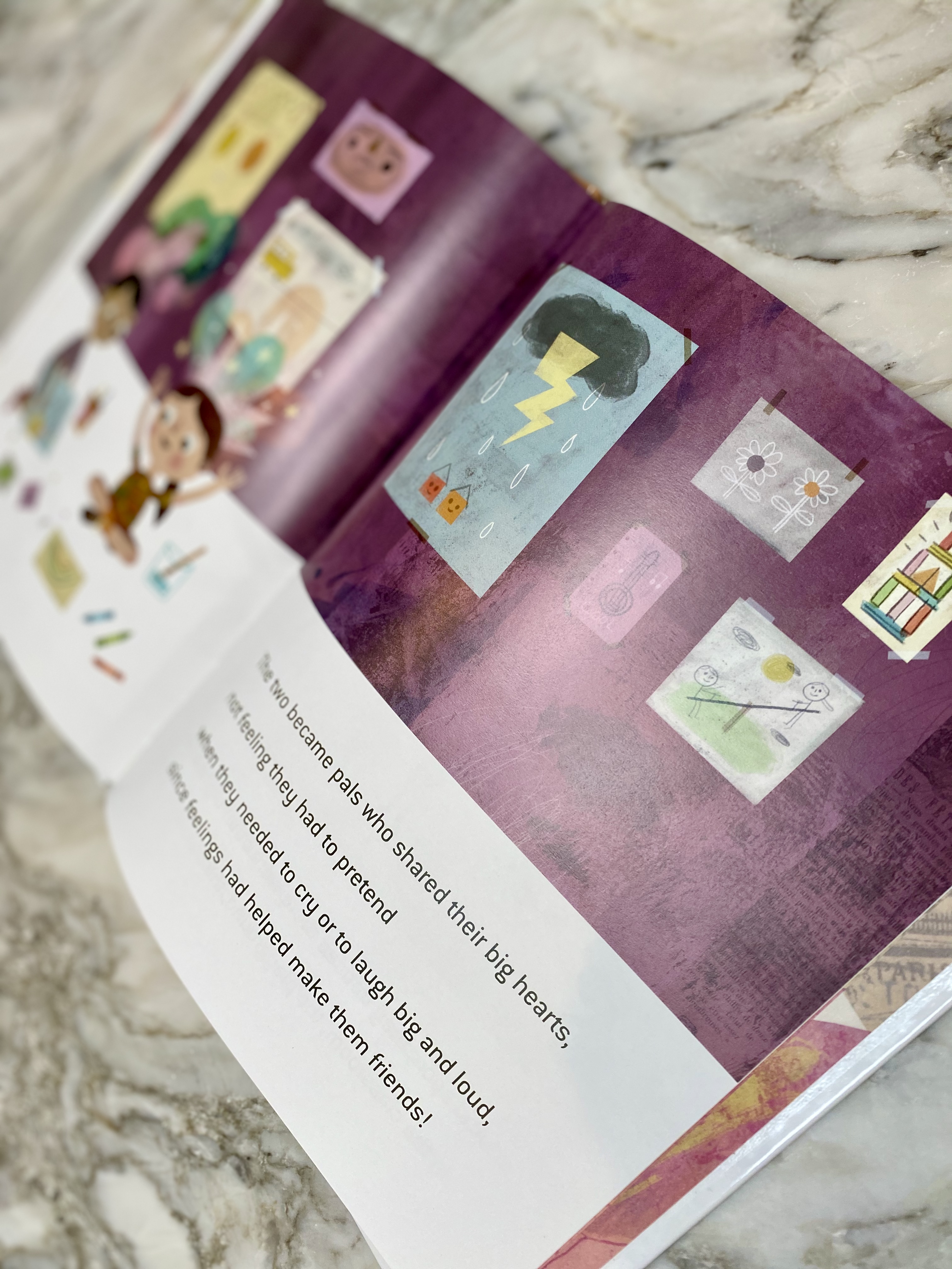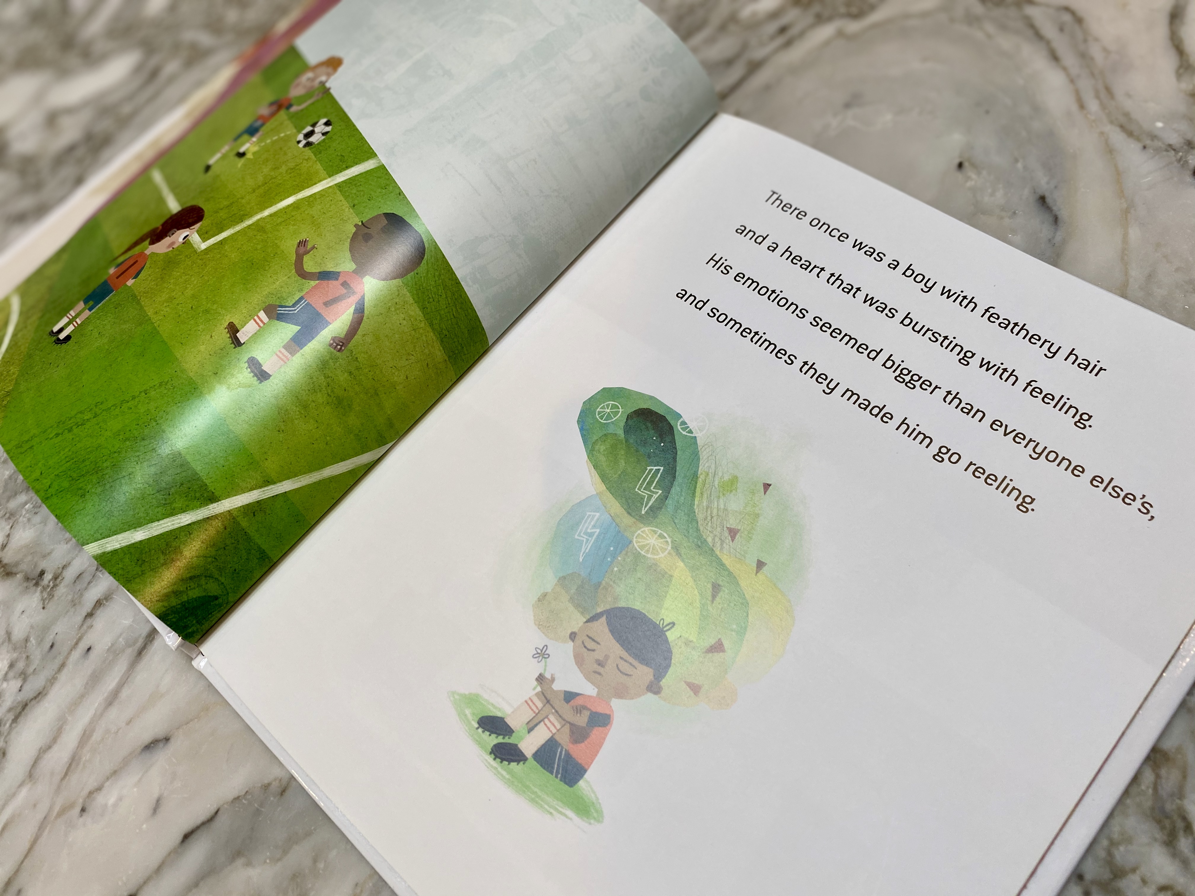 And lastly, just look at these illustrations! From the end pages to how Souva has portrayed emotions swirling around the characters, these illustrations will make YOU feel! The combination of Souva’s illustrations with Lee’s descriptive phrases (you know it’s special when tears are described as “That big heart of his / would push feelings right out of his eyes!”) allows children to deepen their understanding of feelings and develop language to describe how their emotions make their bodies feel.