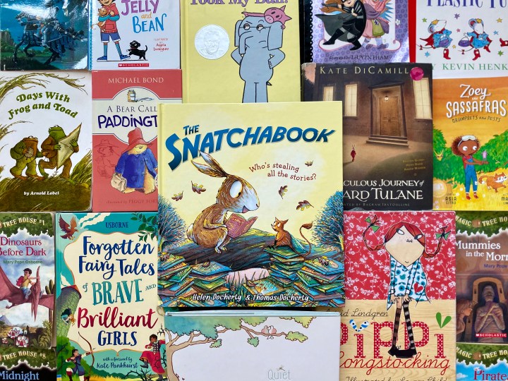 In The Snatchabook, the children in Eliza Brown’s town love their nighttime stories: “And every child in every bed / listened hard to each word said.” Until, that is, their books begin to disappear mid-read! Their bookshelves become more and more bare until Eliza Brown decides to get to the bottom of this unusual mystery… And when she does, she can’t believe what she finds. A Snatchabook! A Snatchabook who loves stories, but has no home full of stories and loving companion to read them to him.