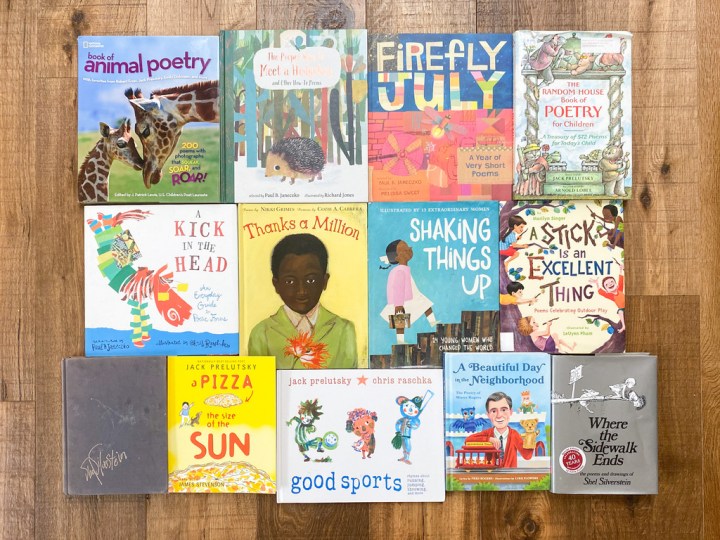 Where the Sidewalk Ends, A Light in the Attic, and Falling Up by Shel Silverstein — Given that I can still remember all of the words to “Sick” and “Clarence” from when I read them over and over (and over) again as a child, I couldn’t possibly make a poetry list without my three favorite Shel Silverstein books. From touching and tender (“Listen to the mustn’ts child…”) to hilarious and/or ridiculous, Silverstein worked magic with words to make word play and poetry fun and accessible to children. If you don’t have one (or all three…) of these in your home or classroom library, make sure you fix that quickly! Ages 4-8.