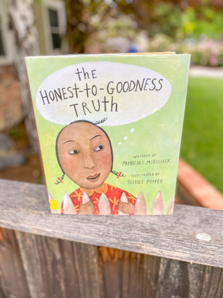 Don’t you worry, we’re still reading all the best honesty books over here for our Family Focus trait of honesty for May! Though we don’t really have formal trait-building activities to go with honesty month as we have in the past, we are still reading our honesty picture books and adding to our honesty chart. And this week, we read an absolute gem — The Honest-to-Goodness Truth by Patricia McKissack, illustrated by Giselle Potter.
