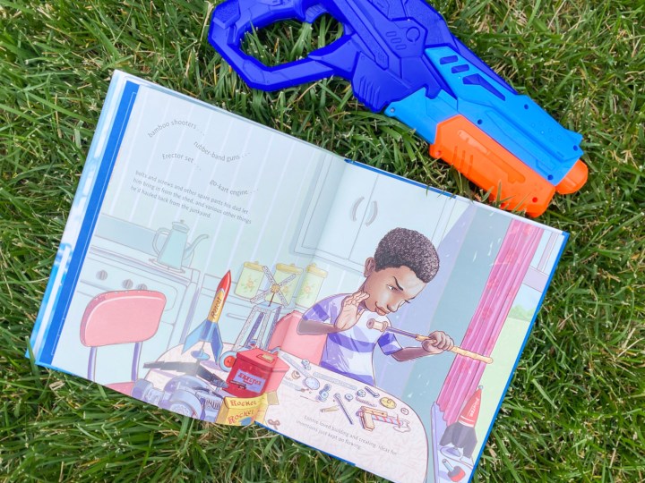 Whoosh! tells the story of Lonnie Johnson, an African-American inventor, and his best-known invention, the Super Soaker water gun. As a child, Lonnie loved to build and to create… especially rockets. Though Lonnie dreamed of becoming an engineer, a test showed he wouldn’t be a good one. But, of course, he didn’t let that stop him, nor did he let trouble with a transmitter on his science fair robot stop him. When he finally completed his robot and entered it into a science fair at the University of Alabama, he won first place — first place in a science fair that he wouldn’t have even been able to enter 5 years prior based on the color of his skin.