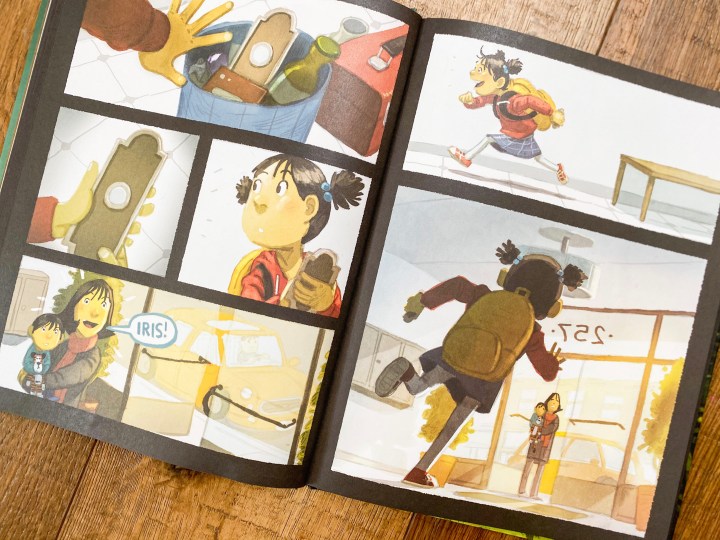 Santat (who also illustrated two of our other favorites: The Adventures of Beekle: The Unimaginary Friend and After the Fall: How Humpty Dumpty Got Back Up Again) is a perfect choice to illustrate these “out of the world” adventurous illustrations. Santat has masterfully illustrated the every family members’ feelings through their facial expressions. We feel Iris’s jealousy grow, we watch her parents’ patience wane, we experience her curiosity about the button, and we are touched by her love and protection of her little brother. His panels keep the story moving, and his spreads pull your heart in. You’ll come back to this one time and time again for both the story and the illustrations!