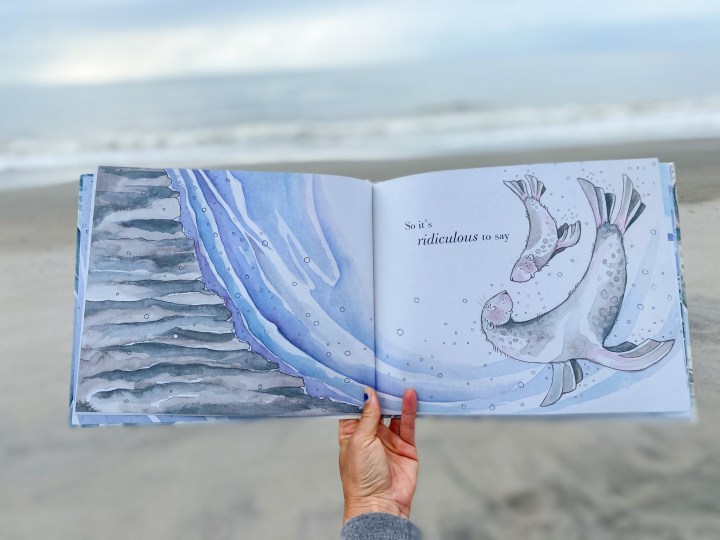 When read in the traditional English way, from left to right, Room on Our Rock reads as a story of selfishness, a story of putting one’s own needs in front of others. The book opens with a group of seals (and a seagull), perched atop a rock, declaring that there’s no room on their rock and shooing two hopeful seals away. The initial seals very unkindly continue insisting that the two newcomers cannot join their rock group, and as they do, the peril in the sea builds… And you just want these two seals to get somewhere safe, and fast!