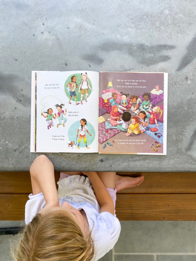 Kayla Harren illustrated the first in the series, A Boy Like You, and her illustrations are delightfully joyous, diverse, and inclusive. You’re likely to spend hours rereading this one just to take in the stories the illustrations are telling you, but please make sure to also spend time with the Author’s Note and Writing Activity in the end, as both will give you great starting points for conversations around kindness, strength, boldness, and courage with the girls in your life.