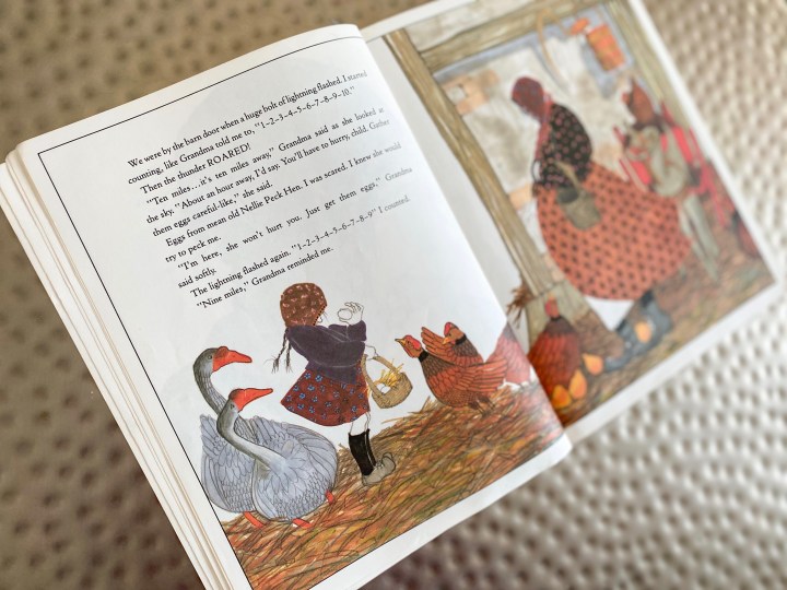 And Polacco’s illustrations here are just as delightfully detailed and unique as ever. The folk patterns, the details in Babushka’s face, and the textures in the sky and the storm as it approaches all transport you right to Babushka’s farm, where you can experience the joy of overcoming a major fear and enjoying the other side of the storm.