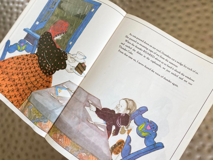 But it isn’t until they are waiting for the cake to bake that Babushka tells Polacco exactly why she can’t possibly be afraid of thunder — she’s way too brave! By recounting all the courageous acts that Polacco performed in order to make the cake, Babushka proves, “From where I sit, only a very brave person could have done all them things! Brave people can’t be afraid of a sound, child.” And Polacco “never feared the voice of thunder again.”