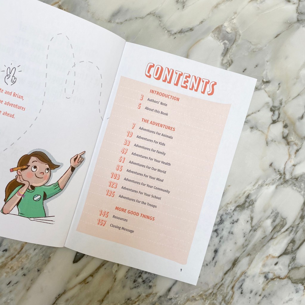 Adventures in Kindness contains kindness challenges, or adventures, one for each week of the year. Each adventure starts with a brief description of why the adventure is important, followed by what you would do to complete it. Then, the authors kindly included a list of what is needed to complete the adventure, including any adult help or supervision, supplies, time, and money.
