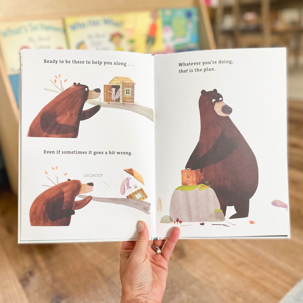 You guessed it! Squirrel misses Bear! “Me without you? It just doesn’t work. / Me without you? I’d just go berserk.” Once Squirrel finds Bear and remedies the hurt, the rest of the book is told in alternating voice, with Bear’s and Squirrel’s lines designated by different texts (making this very fun for 2 people to read aloud together).