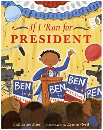 If I Ran for President by Catherine Steir, illustrated by Lynne Avril — Starting with some of the thoughts that go into deciding to run for president, Steir walks children through what it would be like to run for president. Covering declaring your candidacy to campaigning to cauccuses and primaries and more, you might think this sounds more like a textbook, but Steir presents this material in an incredibly engaging manner. Avril has also illustrated a few different children of various races and genders running for president, which adds a neat layer to the story and conversations you can have with young readers. Ages 4-8.