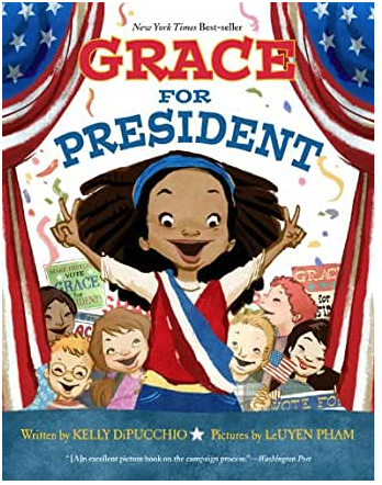 Grace for President and Grace Goes to Washington by Kelly DiPucchio, illustrated by LeUyen Pham — If you’re looking for a fun way to talk about elections and even the branches of government and balance of power, then DiPuccio and Pham’s Grace series is the way to go! With a Black main character and diverse cast of supporting characters, these books are filled with wonderful messages of making good on promises and using teamwork and cooperation to find compromises that not only make everyone happy, but foster inclusivity. You can read my full review here. Ages 5-8.