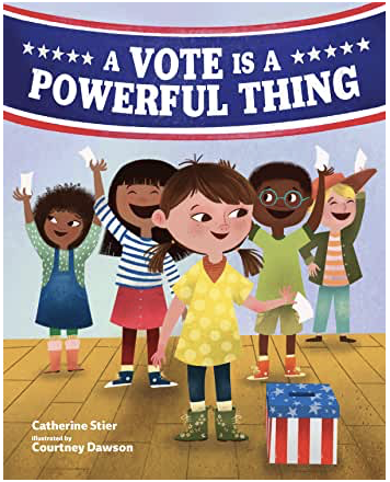 A Vote is a Powerful Thing by Catherine Stier, illustrated by Courtney Dawson — An adorable book about how one girl learns the value of her vote, this ones great for young audiences just learning about voting and elections. Callie has always been aware of elections, as her grandmother is very involved in local policy, but it isn’t until her beloved wilderness park might get shut down that she becomes involved, too. As her class holds a vote to see where their next field trip should be, Callie learns to research and campaign in order to back up her opinion and share her love of the wildnerness park with others. Stier includes extensive backmatter about voting, as well as further reading about both voting and wilderness parks. Ages 4-8.