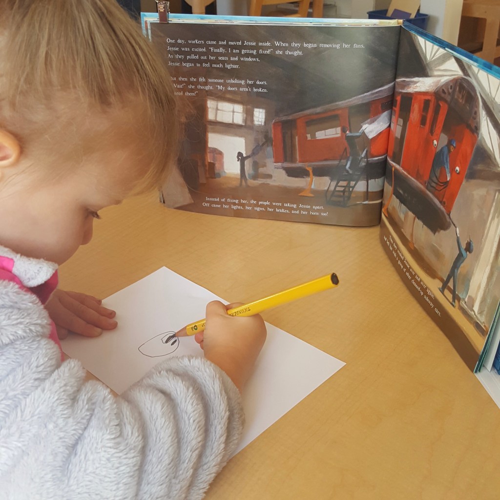 *give them chances to draw and print, using markers, crayons, and pencils