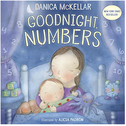 Goodnight, Numbers by Danica McKellar, illustrated by Alicia Padrón — A wonderfully mathematically focused bedtime story, you join a variety of children and their parents as they say goodnight to things around them and prepare for bed. Each page shows both the number digit and the spelled word, and gives children seek-and-find things to look for and count in the pictures. Be sure to spend time with the endpages here, as Padrón does a delightful job of showing children various ways to represent numbers 1-10. Fans of this might also enjoy McKellar’s Ten Magic Butterflies.